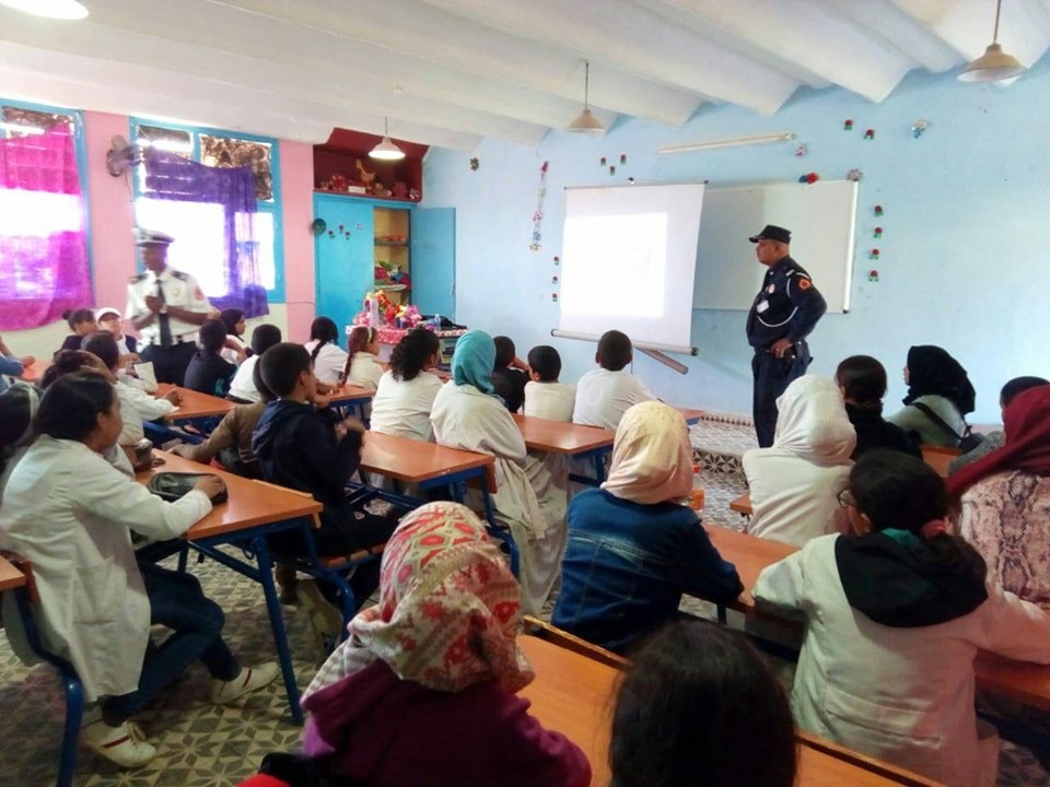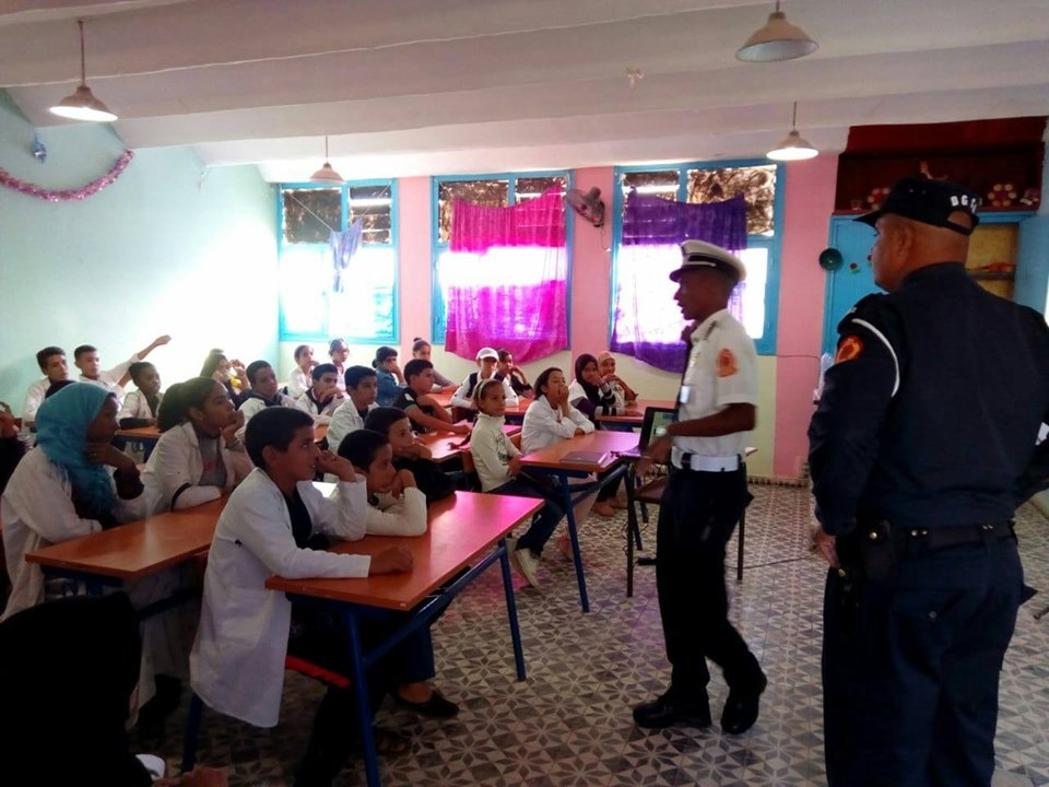 الضابط عبدالله بيلا ومقدم الشرطة نور الدين حثا التلاميذ من خلال ورشة تفاعلية على تبني السلوكات السلمية المستجيبة لمقتضيات السلامة الطرقية، وعلى ضرورة الانخراط الجماعي لإيقاف النزيف الطرقي الذي تعرفه بلادنا ،داعيا كل مستعملي الطريق للتقيد بالقوانين المنظمة للسير والمساهمة كل من مكانه لتغيير السلوكيات الطرقية حفظا للسلامة العامة، وتطوير الوعي الجماعي بالمسؤولية.