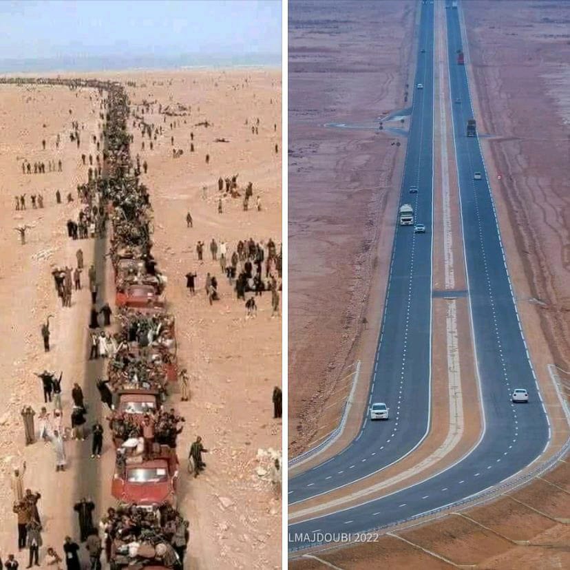 هذا المشروع العملاق يخترق كثبان رمال الصحراء و يربط المغرب بعمقه الإفريقي بطول 1055 يربط تزنيت بالداخلة مرورا بمدينة العيون،و تحديدا عند المقطع الطرقي طانطان الوطي