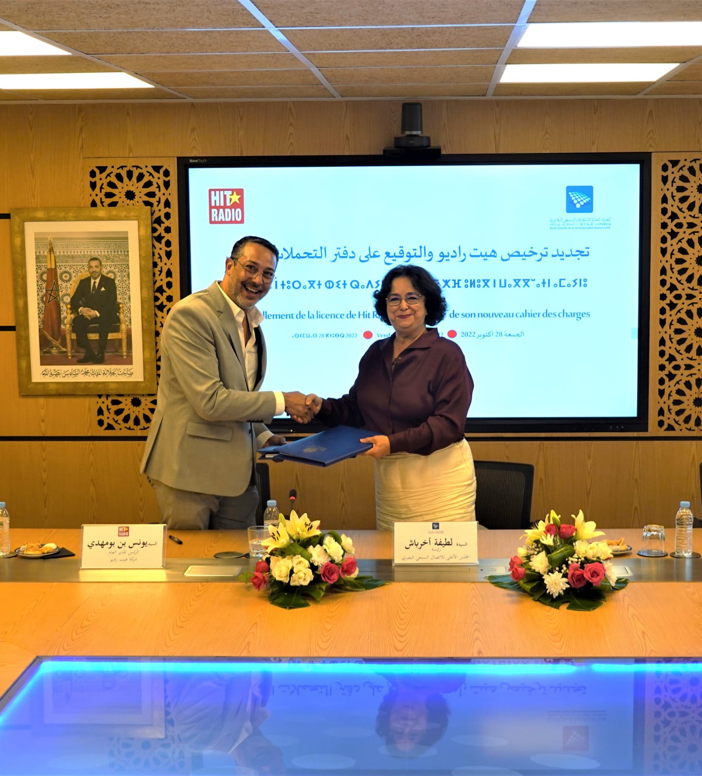 نظمت الهيأة العليا للاتصال السمعي البصري يوم 28 أكتوبر 2022 بمقر المؤسسة، حفل التوقيع على دفتر التحملات الجديد لهيت راديو. يندرج وضع دفتر التحملات الجديد في إطار تجديد المجلس الأعلى للاتصال السمعي البصري لترخيص استغلال إذاعة هيت راديو بعد انقضاء مدته.