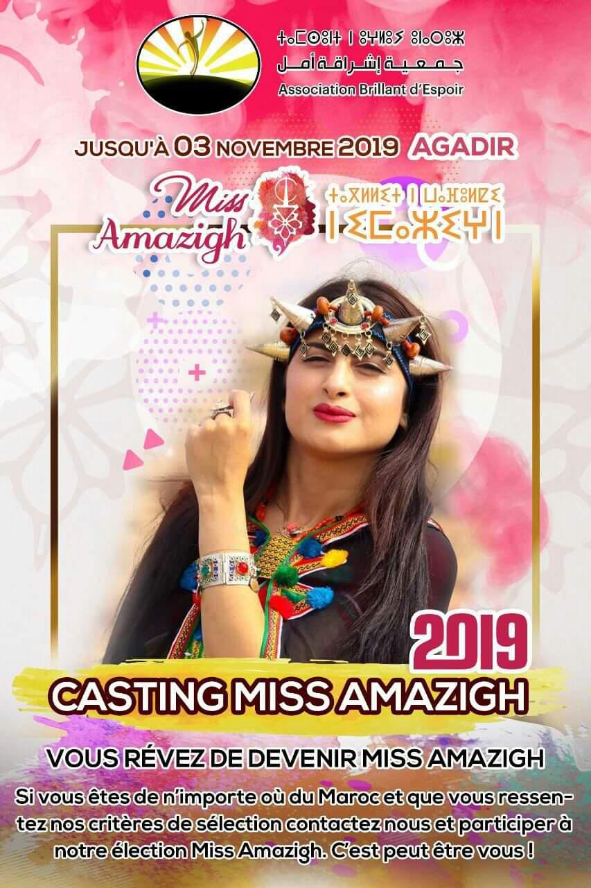 تعلن جمعية إشراقة أمل عن انعقاد الدورة السادسة من تظاهرة ملكة جمال الأمازيغ، وتهدف إلى التعريف بالثقافة الأمازيغية، ودور المرأة الأمازيغية في مقاربة مختلف الأبعاد التنموية والثقافية والإجتماعية.