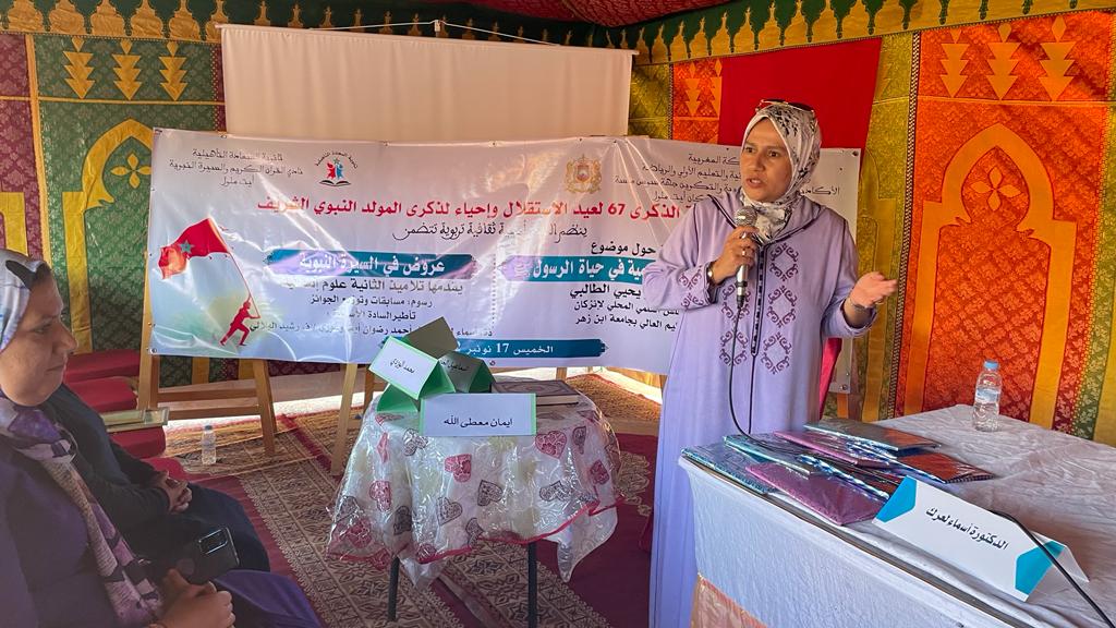 وقد تضمن برنامج هذه الأمسية محاضرة علمية في موضوع: جوانب تربوية وتعليمية في حياة الرسول صلى الله عليه وسلم، من تأطير الأستاذ ايحيا الطالبي أستاذ التعليم العالي وعضو المجلس العلمي المحلي بإنزكان.