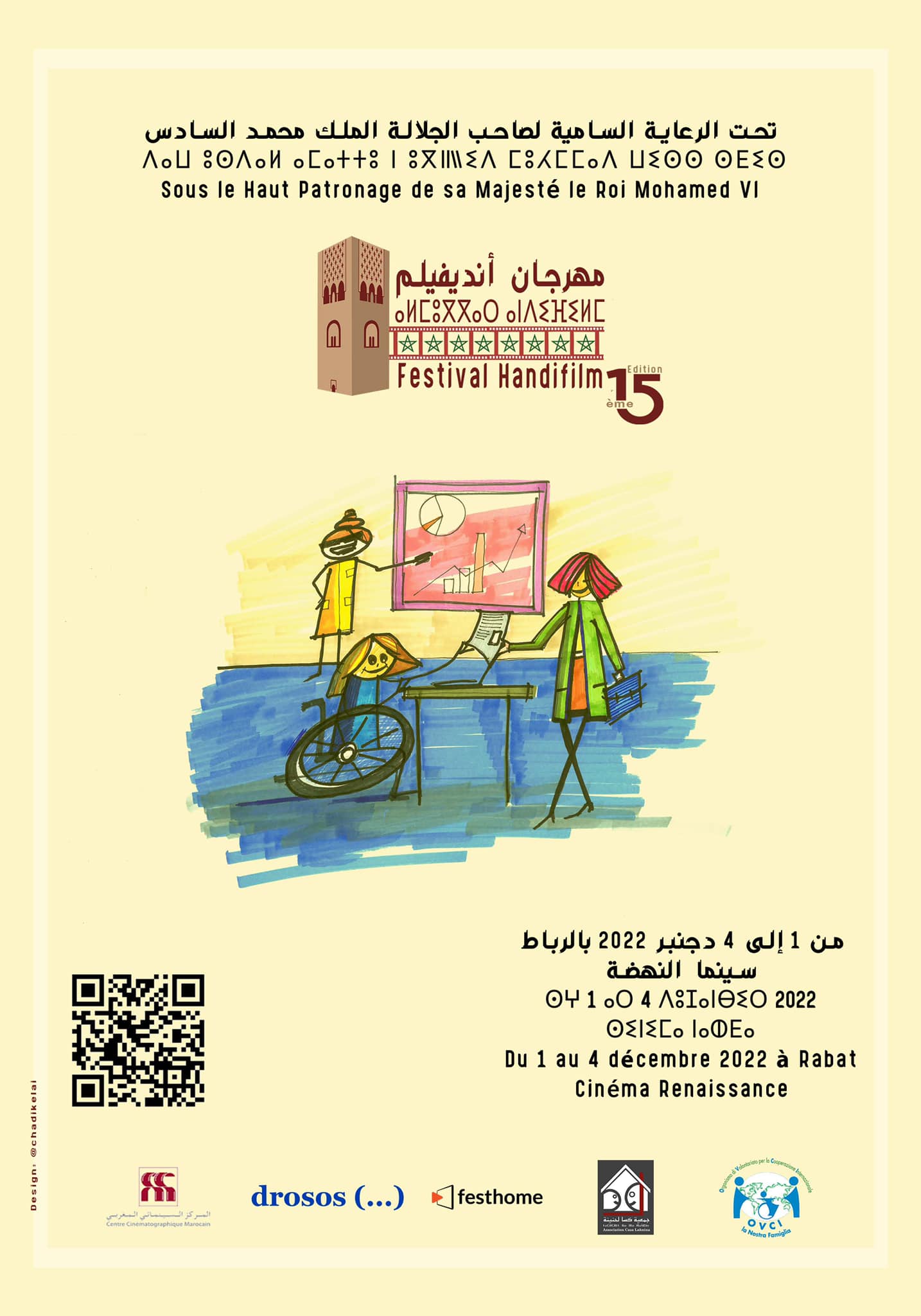 بمناسبة اليوم العالمي للإعاقة، وفي إطار أنشطتها الرامية إلى النهوض بسينما دامجة ونشر ثقافة متقبلة للاختلاف، تنظم جمعية أنديفيلم، تحت الرعاية السامية لجلالة الملك محمد السادس، الدورة الخامسة عشر لمهرجان أنديفيلم بالرباط من 1 إلى 4 دجنبر 2022.