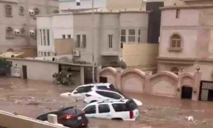 شهدت مدينة جدة عروس البحر الأحمر بالمملكة العربية السعودية هطول أمطار قوية نتجت عنها سيول جارفة حولت الشوارع الى أنهار جارية، مما دفع بالسلطات الى غلق الأنفاق وعدة طرق، كما تم تعلبق الدراسة بالمدارس.