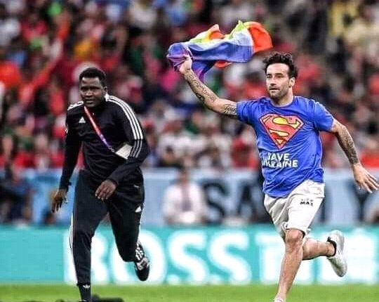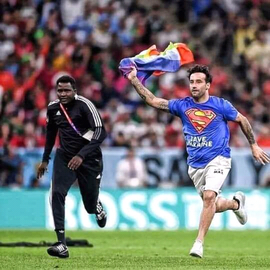 خلال المواجهة التي جمعت منتخب البرتغال بنظيره أوروغواي بملعب لوسيل ضمن مبارايات الدور الثاني للمجموعات قطر 2022، شهدت اقتحام مشجع الأرضية الملعب يحمل معه علم دعم مجتمع الميم.