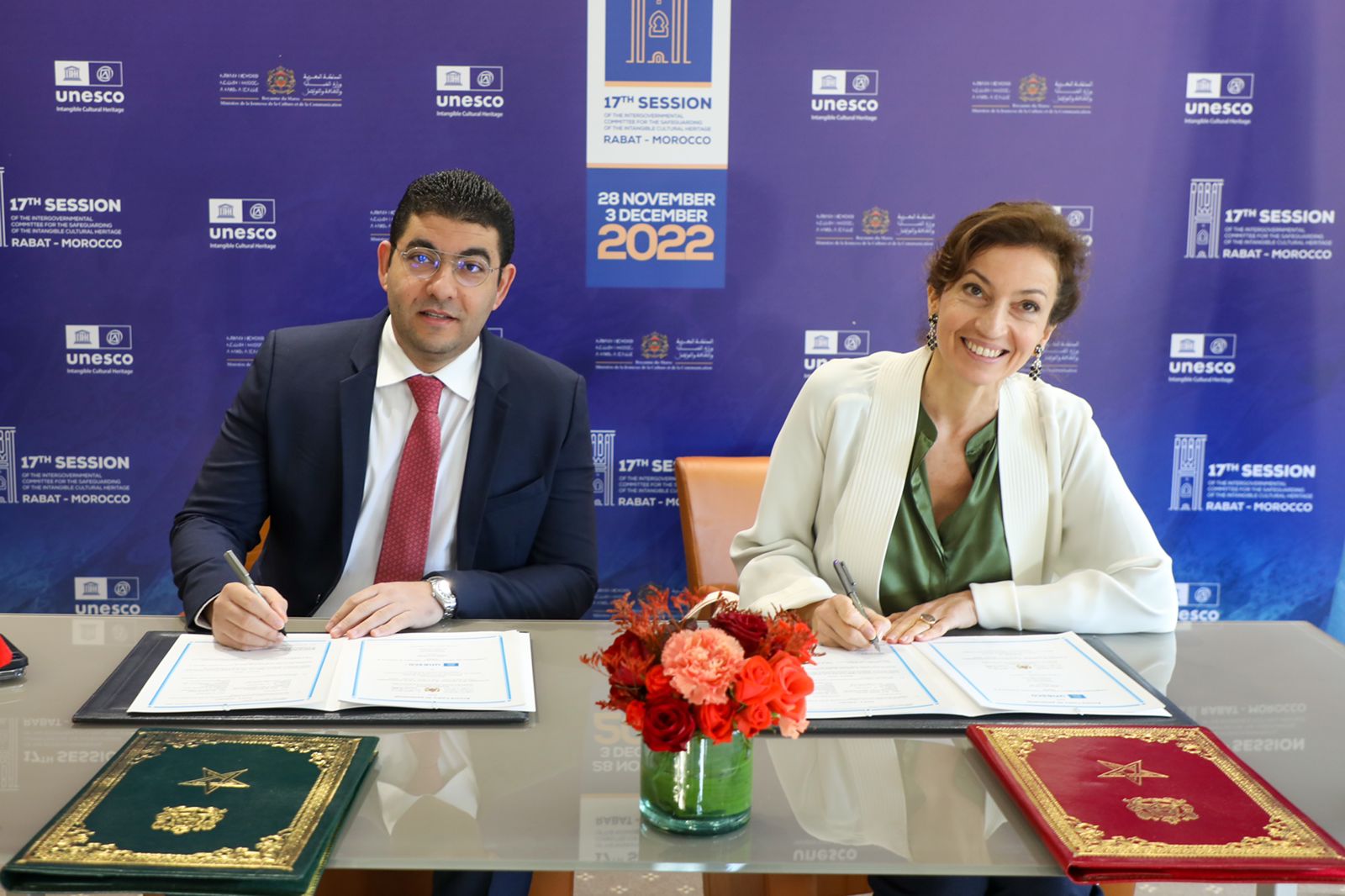 وبموجب هذه الاتفاقية التي وقعها كل من وزير الشباب والثقافة والتواصل، السيد محمد المهدي بنسعيد، والمديرة العامة لمنظمة (يونيسكو)، السيدة أودري أزولاي، على هامش الدورة ال17 للجنة الدولية الحكومية لصون التراث الثقافي غير المادي المنعقدة حاليا بالرباط، يعمل الطرفان على تقديم خبرتهما في الأنشطة الخاصة بتعزيز القدرات في مجال حماية التراث العالمي وتعزيز قدرات الفاعلين في مكافحة الاتجار غير المشروع بالممتلكات الثقافية.