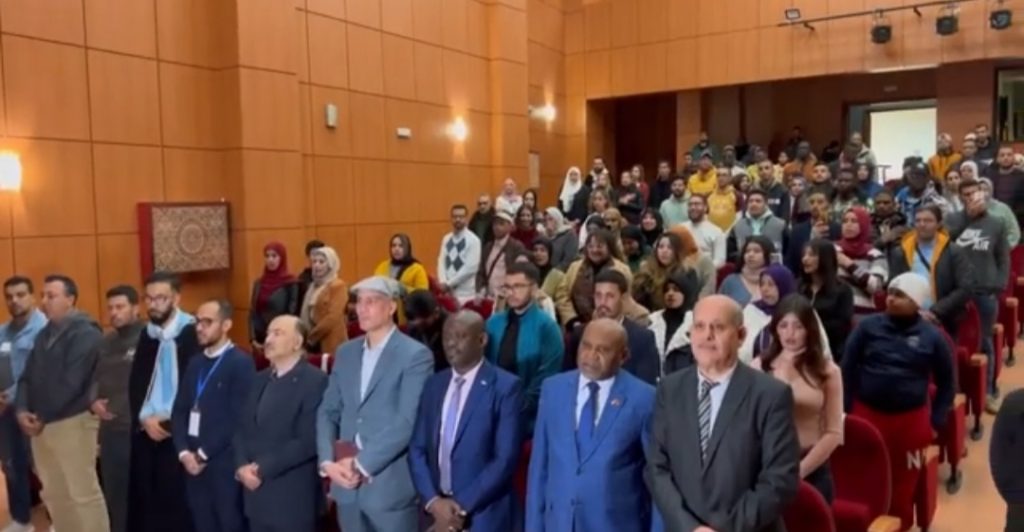 بعد وصلة الترحاب بالحضور وضيوف الشرف، السادة القناصلة لدولة جزر القمر ودولة الكابون والمرافقين لهم والسيد باشا مدينة سطات وعدد من المسؤولين؛ جاءت لحظة الوقوف للنشيد الوطني و”بشعار الله، الوطن، الملك” افتتحت فعاليات الدورة الرابعة للمهرجان الدولي للتراث الإفريقي.