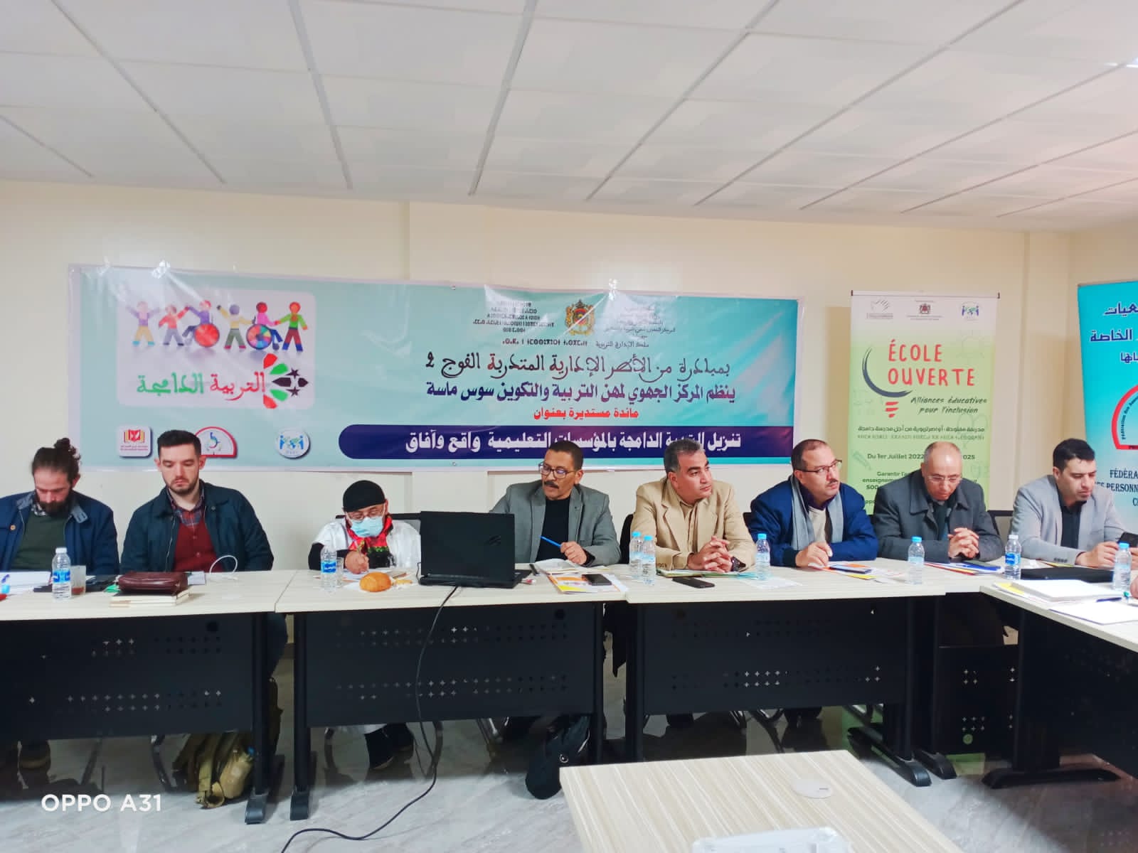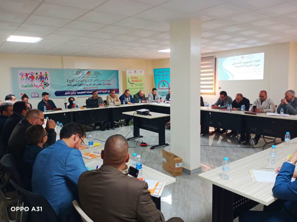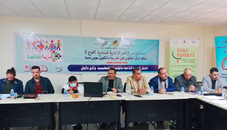 وللإقتراب من الوضع القائم في الميدان، والوقوف عند احتياجات الأطر التربوية المعنية وتصورهم للاشتغال في إطار خارطة طريق لتعزيز سيرورة التربية الدامجة بالإقليم، تم تنظيم لقاء تواصلي حول مشروع ” المدرسة المفترحة” بحضور المدير الإقليمي لوزارة التربية الوطنية والتعليم الأولي والرياضة باشتوكة أيت باها، ورئيس قسم التعاون والشراكات والمنسق الإقليمي للتربية الدامجة وفيدرالية جمعيات ذوي الاحتياجات الخاصة، وخلال هذا اللقاء أبانت الفعاليات المحلية عن قدرات ورؤى يمكنها المساعدة في كسب رهان تفعيل البرنامج الوطني للتربية الدامجة، تفعيلا ميدانيا عمليا وديمقراطيا يجمع ويشرك كافة الأطراف ويوحد تدخلاتهم.