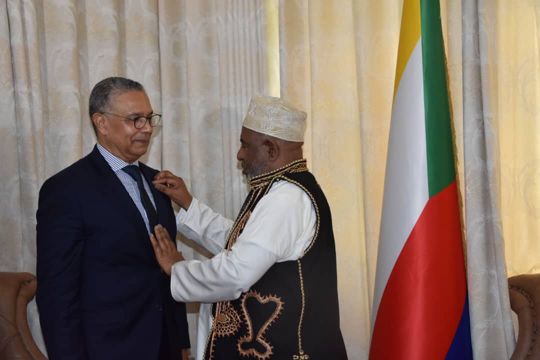 وفي ختام هذه المهمة، استقبل فخامة رئيس جمهورية القمر المتحدة السيد الحافظي والوفد المرافق له حيث رحب بهذا التعاون المثمر بين البلدين الشقيقين.