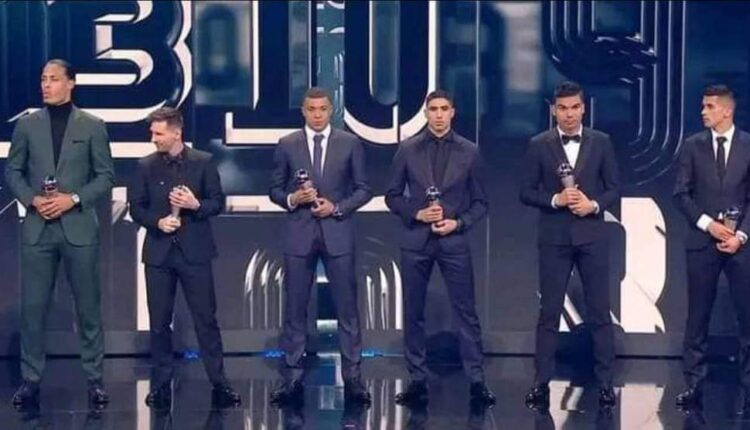 واختير أسد الأطلس المغربي أشرف حكيمي في التشكيل المثالي لسنة 2022 رفقة ميسي ومبابي من فريق باريس سان جيرمان.