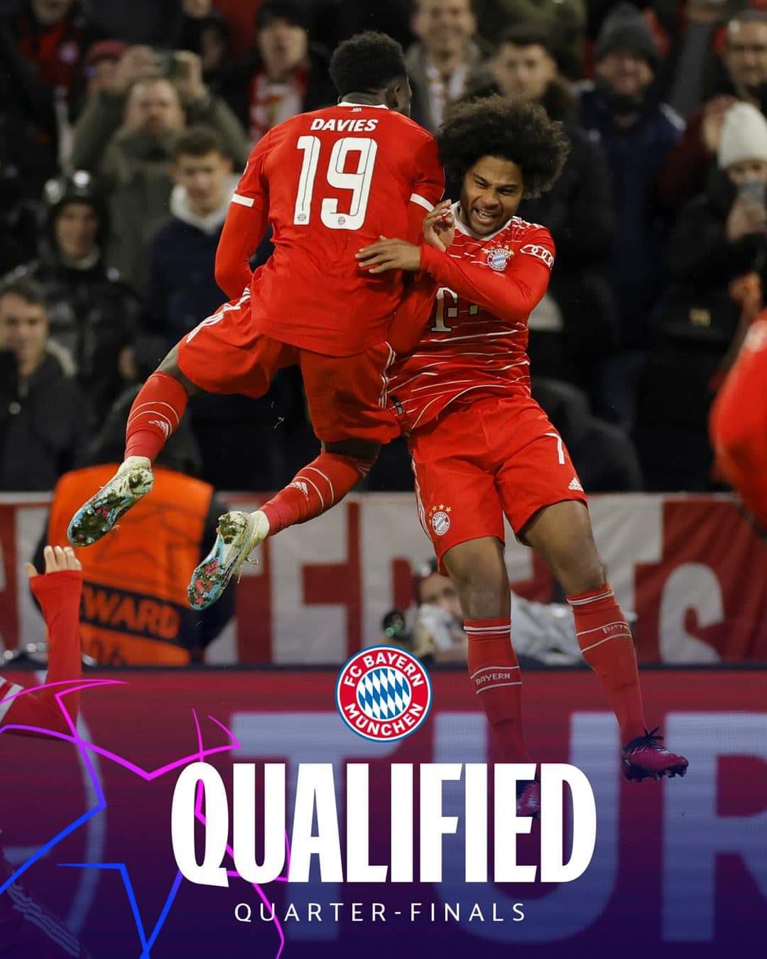 تأهل بايرن ميونخ للدور الربع نهائي من مسابقة دوري ابطال أوروبا بعد الاطاحة بنادي باريس سان جيرمان مساء اليوم بهدفين مقابل واحد في اللقاء الذي جمعهما على ملعب الينز ارينا لحساب اياب دور الثمن النهائي بعدما إنتهى لقاء ذهاب البارك ديبرانس بهدف لصفر لصالح البافاري.