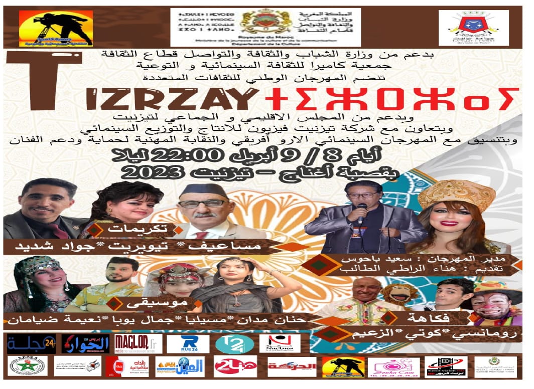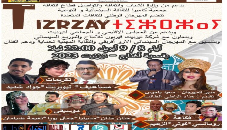 تحتضن مدينة تيزنيت يومي 8 و 9 ابريل 2023، فعاليات الدورة الرابعة من المهرجان الوطني للثقافات المتعددة (تيزرزاي)، والتي تنظمها جمعية كاميرا للثقافة السينمائية والتوعية، وذلك بدعم من وزارة الشباب والثقافة والتواصل قطاع الثقافة.