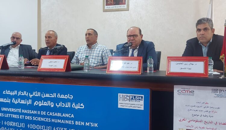 شارك الامين العام لمجلس الجالية المغربية بالخارج، عبد الله بوصوف، يوم الأربعاء 10 ماي 2023 بالجلسة الافتتاحية للندوة الوطنية حول “قضايا في التاريخ الدبلوماسي المغربي: الدبلوماسية المغربية زمن الأزمات” التي احتضنتها كلية الآداب والعلوم الإنسانية بجامعة الحسن الثاني بالدار البيضاء.