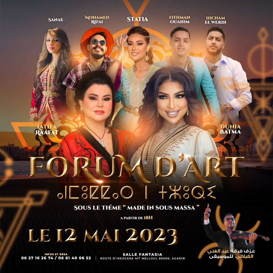 تحت شعار”Made in Souss Massa ”، تستعد المؤثرة وفاء جوهري المعروفة بـ”فوفا ماجيك” وحمزة هوان أصغر مدير فني، لتنظيم حفل فني واجتماعي “ملتقى الفن” بعاصمة سوس ماسة وذلك يوم الجمعة 12 ماي 2023 بقاعة الافراح الفروسية بمدينة إنزكان.