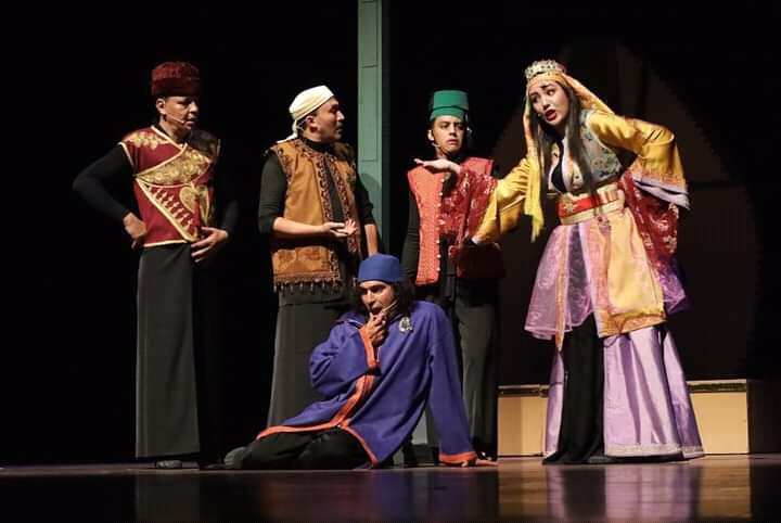 بزي شهرزاد و أميرات الزمن الجميل الذي يجمع بين أصالة الصانع المغربي ويعكس تنوع الثقافة المغربية ، اعتلت الممثلة لمياء خربوش خشبة مسرح محمد المنوني بمكناس، بدور العالية، وهي الأنثى الوحيدة مع ثلاثة ممثلين، المسرحية تتخللها أغاني شعبية ذات معاني طبعت الذاكرة المغربية تمزج النصح الطرب في قالب يسهل أن تلتقط الأذن.