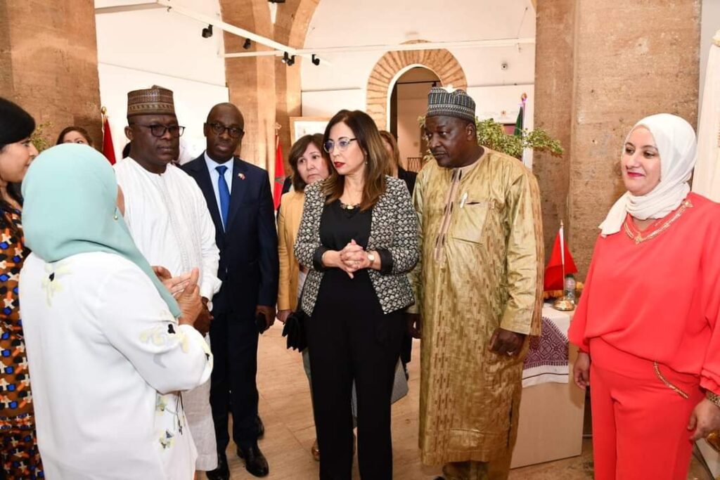 واختتمت الزيارة بالحضور لافتتاح معرض حول الطرز المغربي والذي نظمته جماعة الرباط تحت شعار “الطرز المغربي، ثقافة الأجداد للتقارب نحو الثقافة الافريقية والعالمية ” بدعم من وزارة التضامن والادماج الاجتماعي والأسرة.