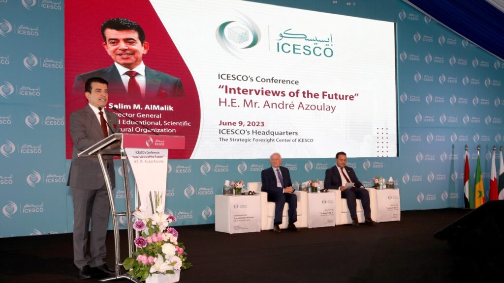 ضمن مبادرة “حوارات المستقبل”، التي أطلقها مركز الاستشراف الاستراتيجي بمنظمة العالم الإسلامي للتربية والعلوم والثقافة (إيسيسكو)، استضافت المنظمة بمقرها في الرباط اليوم الجمعة (9 يونيو 2023)، السيد أندري أزولاي، مستشار جلالة الملك محمد السادس، عاهل المملكة المغربية، حيث ألقى محاضرة حول العوامل الضرورية لصناعة المستقبل، انطلاقا من التمسك بالهوية وتربية الأجيال الجديدة على قيم التعايش وتقبل التنوع باعتباره مصدر قوة، مشيرا إلى تجربة المملكة المغربية في هذا الشأن.