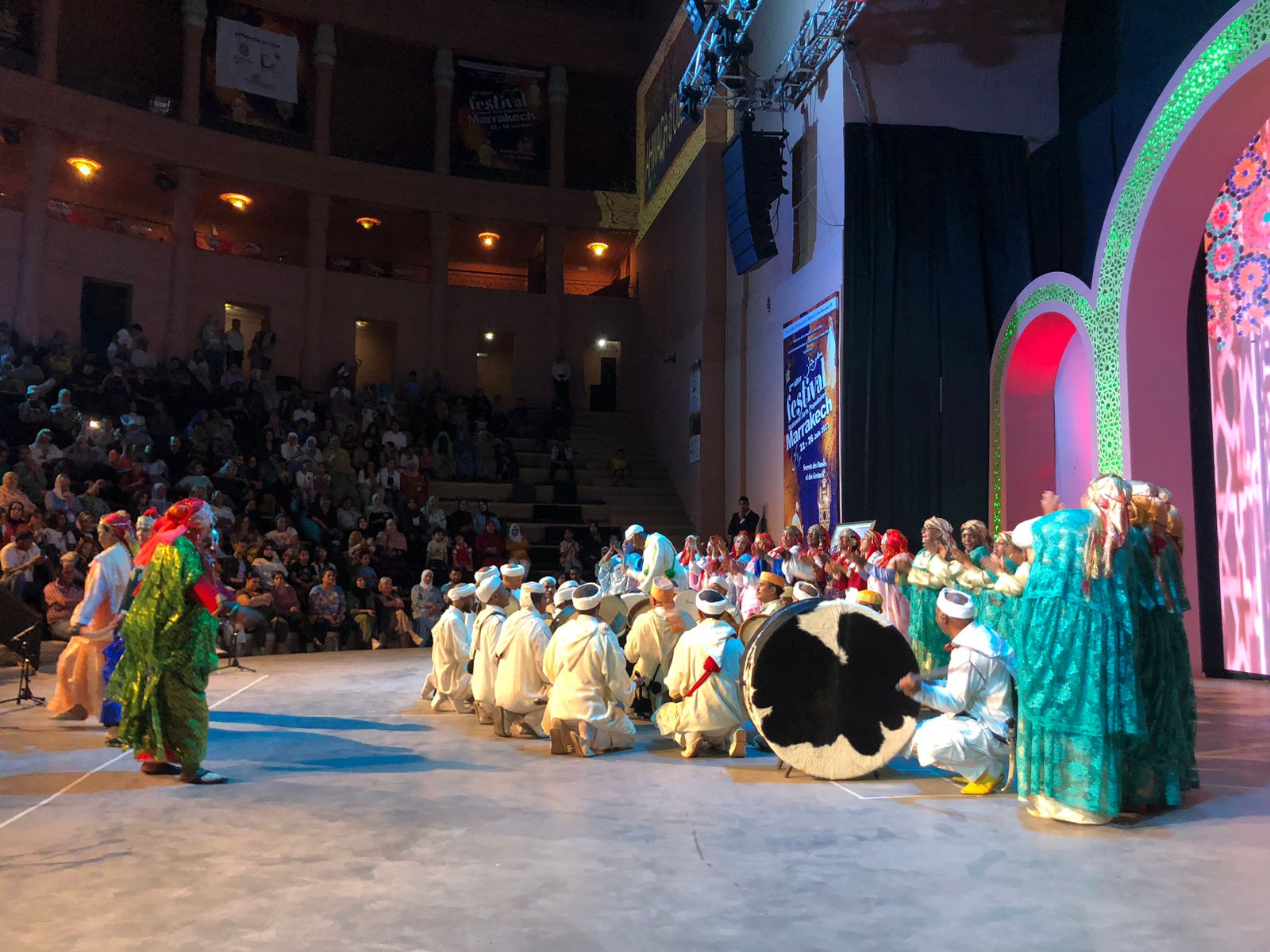 انطلقت فعاليات مهرجان الفنون الشعبية، مساء أمس، بمدينة مراكش تحت شعار “أسرار الرقصات والإيماءات”، والتى تكشف عن المواهب الفنية بالمغرب، فهو حدث ثقافي لا مثيل له، انطلقت فعالياته بموكب فلكلوري وعروض فنية لفرق تمثل المغرب من طنجة إلى الكويرة، ركادة، عبيدات الرما، رقصة الكدرة وغيرها من الفنون الشعبية المغربية، التي ملأت شوارع المدينة، من ساحة الحارثي مرورا باهم شوارع المدينة النابضة، وصولا إلى المسرح الملكي، حيث حلت الفرق وكأنها اسراب زاجلة، تضع راحلتها بباحة المسرح الملكي لتقديم عروض فنية شيقة، استمتع معها الحضور بتشكيلة من الرقصات والأداء الشعبي الفلكلوري، الفرقة تلو الأخرى وأداء متميز قل نظيره.