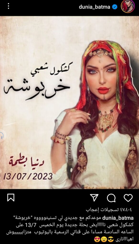 تفاعل جمهور بطمة مع منشور إصدار عمل “خربوشة” الذي تأجل طرحه لعدة مرات ، وتخطي منشورها مايقرب من 40 ألف.