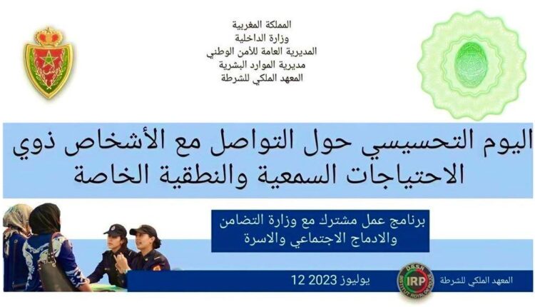 ويتضمن برنامج هذا اليوم التحسيسي، الذي يستفيد منه موظفو الشرطة العاملون بولاية أمن القنيطرة كمرحلة أولية قبل تعميمه على الصعيد الوطني، تقديم مداخلات حول خصوصيات التواصل مع الأشخاص من ذوي الاحتياجات الخاصة، فضلا عن أهمية الإلمام بتقنيات لغة الإشارة باعتبارها جزءً من منظومة الولوجيات إلى خدمات المرفق العام الشرطي.