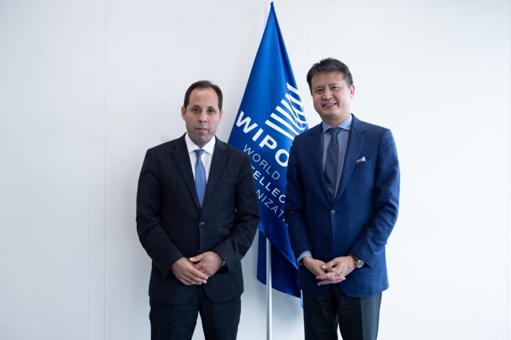 وفي نفس السياق دائما، التقى الوفد المغربي برئاسة السيد عمر زنيبر، السفير والممثل الدائم للمغرب في جنيف في اليوم الموالي، أي في يوم 12 يوليوز، السيد دارين تانغ المدير العام للويبو، حيث عقد الطرفان اجتماعا مهما حضره السيد عبد العزيز ببقيقي، المدير العام للمكتب المغربي للملكية الصناعية والتجارية، حيث شكل اللقاء فرصة لتسليط الضوء على علاقات التعاون الجيدة بين المغرب و المنظمة. كما أشاد السيد دارين تانغ بالديناميكية والتقدم الذي أحرزه المغرب في مجال الملكية الصناعية وأكد التزام المنظمة بتعزيز التعاون مع المغرب ودعمها للمبادرات والمشاريع الرامية لتطوير وتقوية الاستعمال الفعال للملكية الصناعية في المغرب لفائدة المقاولات والمبتكرين. الوفد المغربي من جهته جدد في ختام اللقاء الدعوة إلى المدير العام للمنظمة العالمية للملكية الفكرية، لزيارة المغرب، والتي من المرتقب ان تتحقق في أكتوبر 2023.