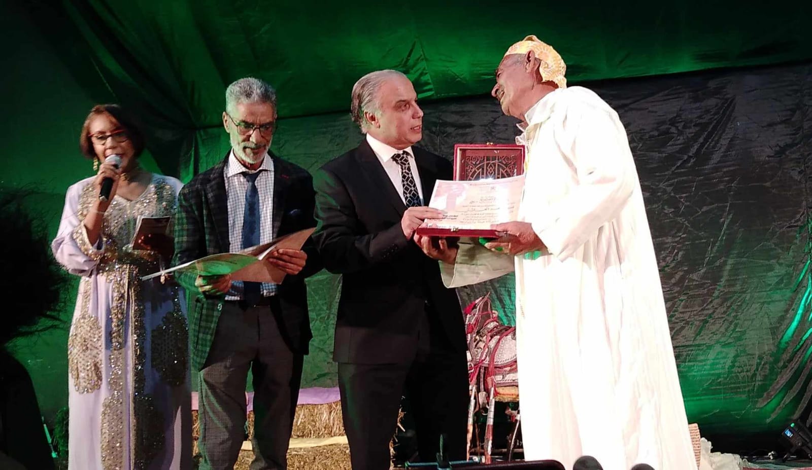 وقد تسلما هدايا ودرعا التكريم، في هذا الحفل الذي نشطته الفنانة والممثلة فاطمة بوجو، بحضور جمهور عريض، من يد عامل إقليم خريبكة، والمدير الجهوي للثقافة الطالب بويا لعتيك.
