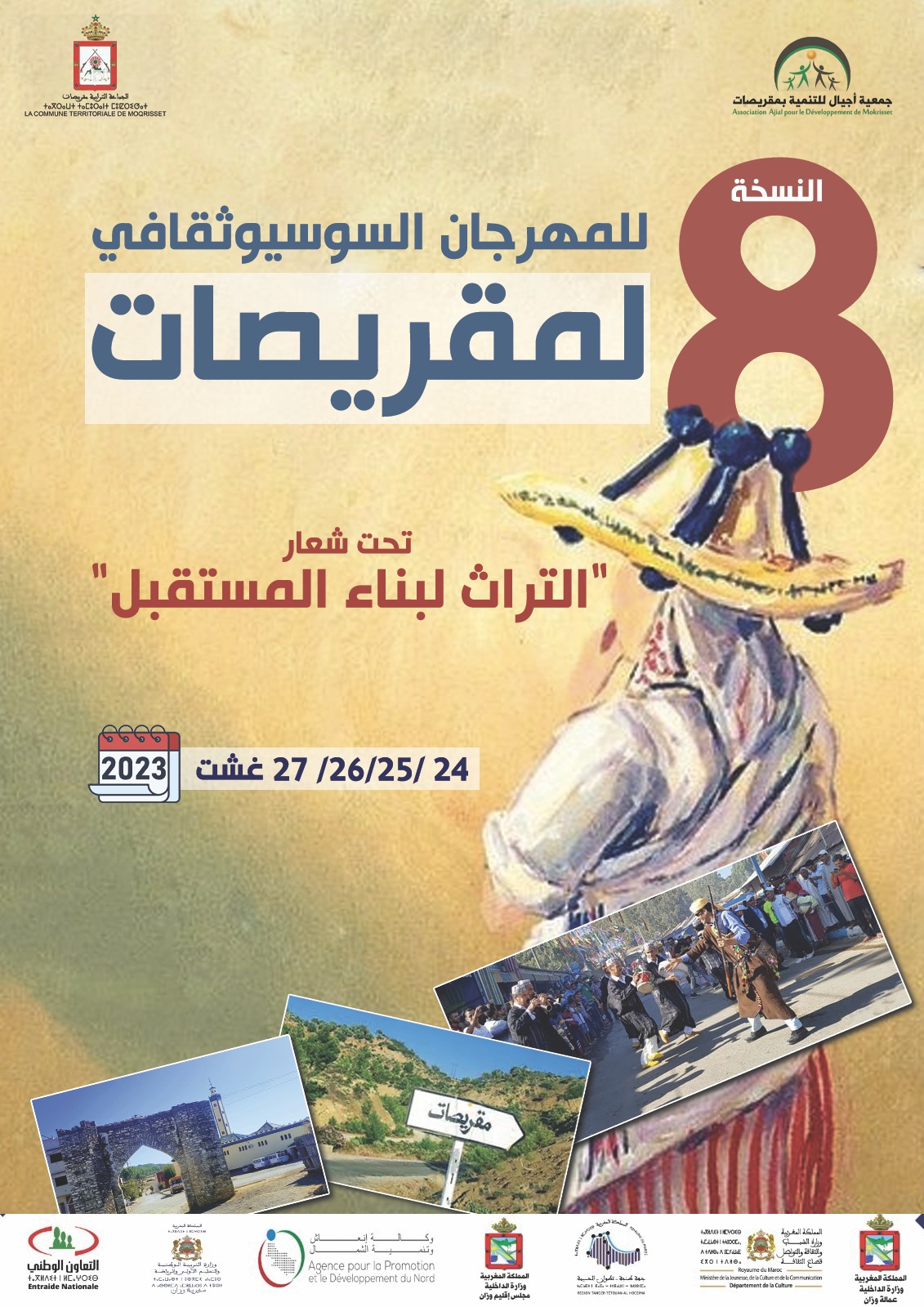 بمناسبة احتفالات الشعب المغربي بذكرى ثورة الملك والشعب وذكرى عيد الشباب، وتحت شعار “المهرجان السوسيوثقافي لمقريصات: التراث لبناء المستقبل” تحتضن جماعة مقريصات، إقليم وزان في الفترة من 24 إلى 27 غشت 2023، النسخة الثامنة للمهرجان السوسيوثقافي لمقريصات، المهرجان من تنظيم جمعية أجيال للتنمية بمقريصات بشراكة مع المجلس الجماعي لجماعة مقريصات وبمشاركة مجموعة من الجمعيات المحلية وبدعم من عمالة إقليم وزان، وزارة الثقافة والشباب والتواصل – قطاع الثقافة، مجلس إقليم وزان، مجلس جهة طنجة تطوان الحسيمة ووكالة إنعاش وتنمية الشمال.