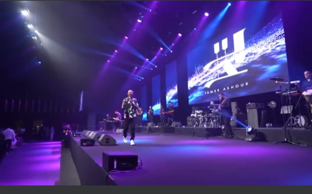 بالصور .. تامر عاشور يحيي لأول مرة حفل غنائي في دبي وسط جمهور عريض