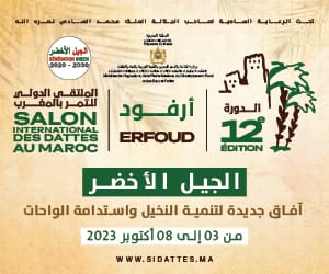 تحت شعار “الجيل الأخضر: آفاق جديدة لتنمية النخيل واستدامة الواحات”؛ ستنظم جمعية الملتقى الدولي للتمر تحت إشراف وزارة الفلاحة والصيد البحري والتنمية القروية والمياه والغابات، فعاليات الدورة 12 من الملتقى الدولي للتمر بالمغرب، وذلك يوم الثلاثاء المقبل الموافق ل3 أكتوبر وتستمر لغاية الثامن منه، بمدينة أرفود.
