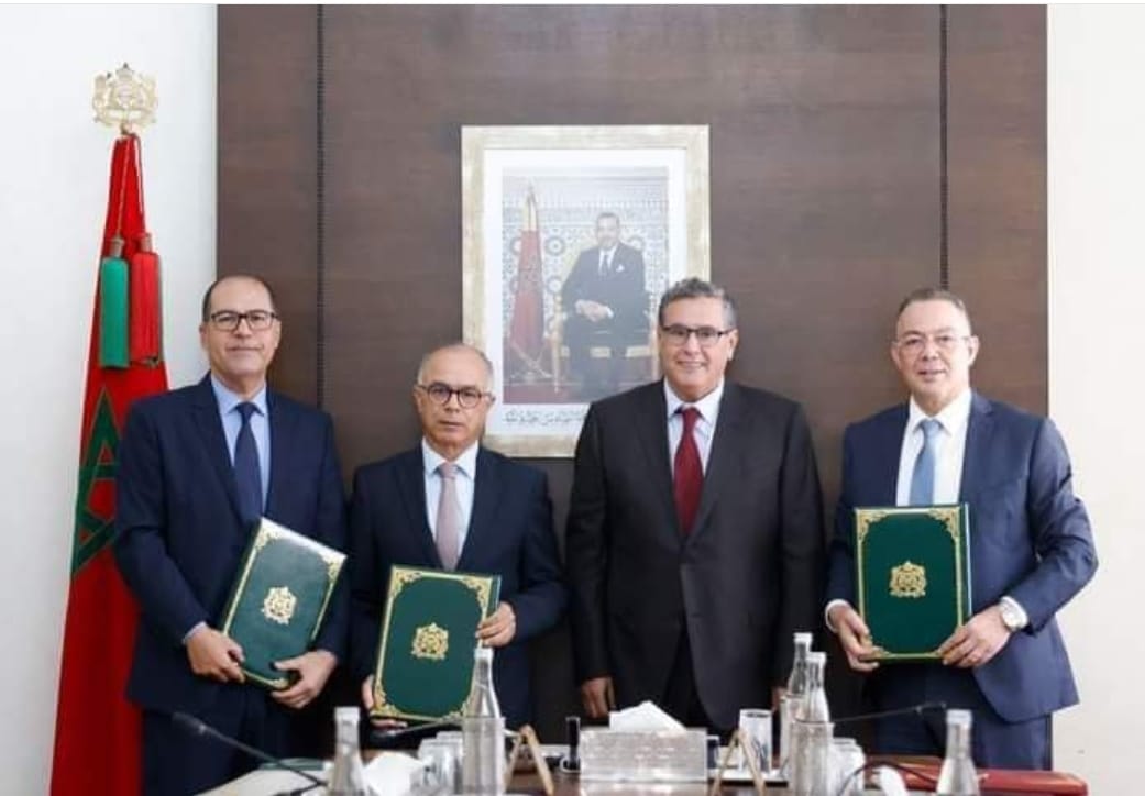 تنفيذا للتعليمات الملكية السامية المتعلقة بإنجاح احتضان المملكة لنهائيات كأس إفريقيا للأمم 2025، وكأس العالم 2030، ترأس رئيس الحكومة السيد عزيز أخنوش، اليوم الجمعة، مراسم التوقيع على اتفاقية شراكة بين الحكومة وصندوق الإيداع والتدبير، لتمويل برنامج تأهيل 6 ملاعب لكرة القدم، تم اختيارها، بتعليمات ملكية سامية، في كل من طنجة، والدار البيضاء والرباط وأكادير ومراكش وفاس، وكذا بناء ملعب جديد في مدينة بنسليمان.