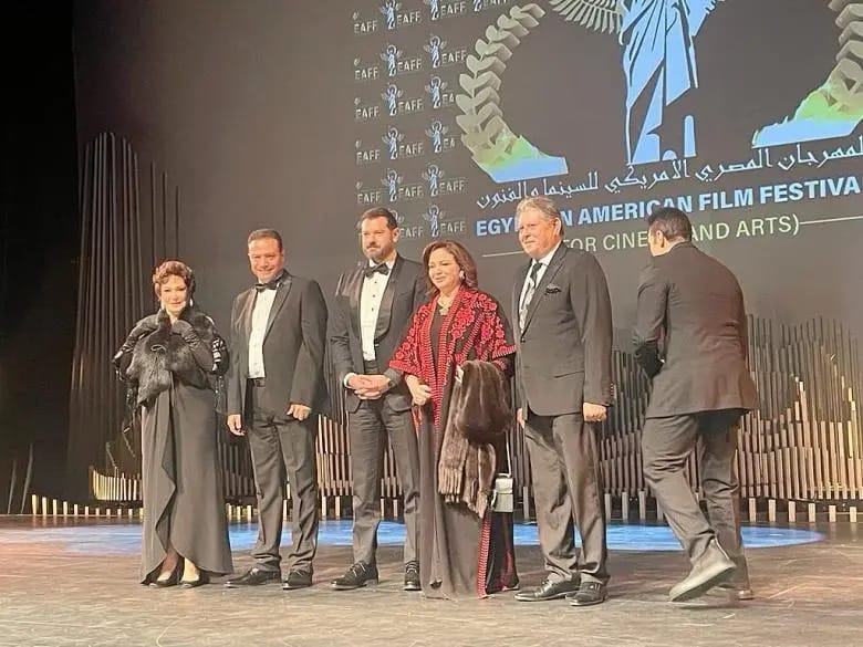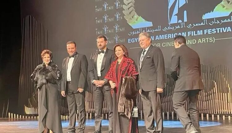 إلهام شاهين بالثوب الفلسطيني.. ولبلبة تبكي خلال تكريمها في المهرجان المصري الأمريكي للسينما والفنون