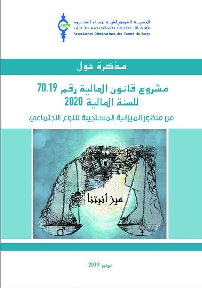 مواكبة لنقاش مشروع قانون المالية وفي إطار التزامها السنوي.. تنظم الجمعية الديمقراطية لنساء المغرب ندوة صحفية حول : “مشروع قانون المالية 2020: تناسى حقوق النساء” يوم الثلاثاء 26 نونبر 2019 على الساعة 10 صباحا بمقر الجمعية (79 زنقة جابر بن حيان، إقامة كازا أنفا، الطابق الخامس قبالة الجماعة الحضرية سيدي بليوط)