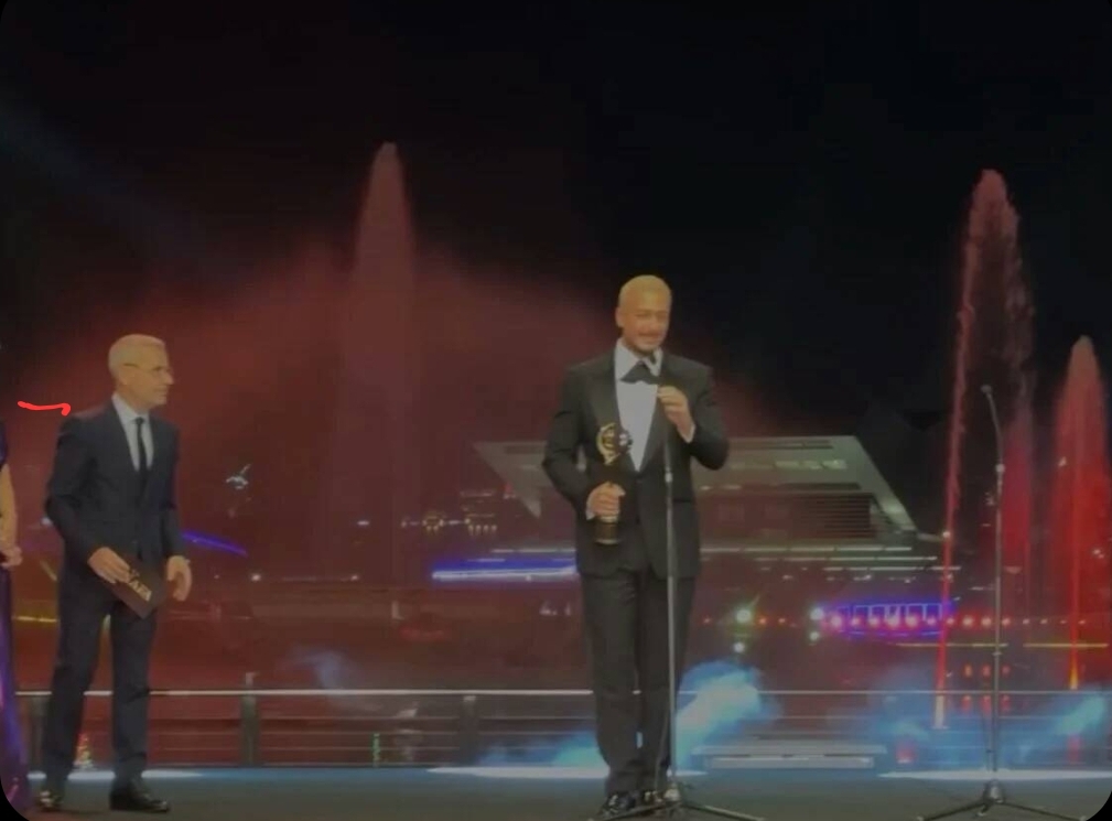 جاء هذا خلال مهرجان ضيافة الأخير، وسط تفاعل الحضور معه، حيث ظهر خلال الحفل وهو يحمل درع التكريم، وشكر الجمهور الذي حياه عند صعوده على الريد كاربت.