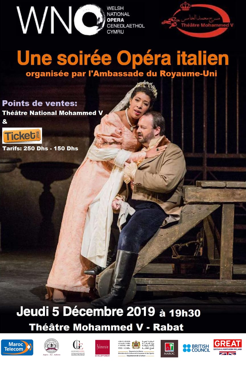 هذا وقد صرح بيتر هاراب المدير المسؤول عن الأوبرا الوطنية لبلاد الغال، في بلاغ حصلت جريدة دنا بريس على نسخة منه، “نحن مسرورون للغاية أن تقوم الأوبرا الوطنية لبلاد الغال بزيارة المغرب وإفريقيا للمرة الأولى لتقديم حفل موسيقي في الخامس من دجنبر في مسرح محمد الخامس. ستعرف هذه الحفلة حضور إحدى أهم الأسماء في عالم الأوبرا مثل مدير الموسيقى السابق لدينا، كارلو ريزي، و مغنية السوبرانو ماري إليزابيث ويليامز ومغني الطينور جونز جوين هيوز”.