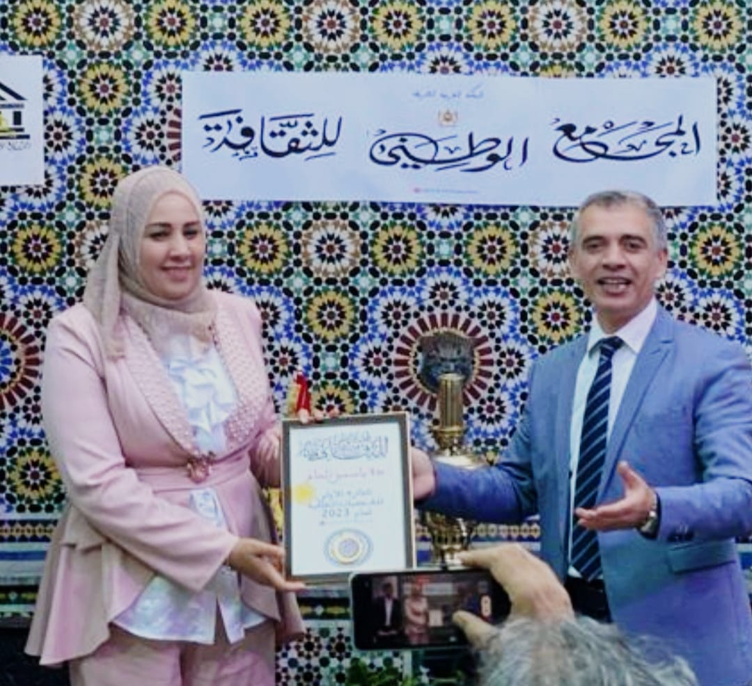 توجت ياسمين الحاج رئيسة منتدى الآفاق للثقافة والتنمية، ومديرة ملتقى الثقافة العربية بمدينة خريبكة يوم أمس، شخصية سنة 2023، وهي الجائزة الرفيعة التي يمنحها المجمع الوطني للثقافة بمدينة الدار البيضاء.