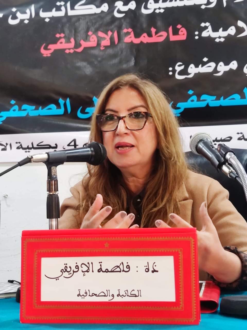 جدير بالذكر أن فاطمة الإفريقي صحافية وإعلامية مغربية، اشتغلت كمقدمة للمجلة الفنية بالقناة الأولى، ثم تكلفت بمهمة إعداد البرامج الفنية بنفس القناة. وكاتبة عمود صحفي بجريدة أخبار اليوم، تعبر فيه بحرية عن أفكارها وقناعاتها وهمومها، مستغلة هامش الحرية التي تمنحها الصحافة المكتوبة، والتي تفتقدها في الإعلام السمعي البصري العمومي حيث تشتغل. وعرفت بتضامنها مع الشعب المغربي ومشاركتها في حراك 20 فبراير 2011، وبمقالاتها المدافعة عن المظلومين وعن المعتقلين السياسيين على خلفية حراك الريف، ومعتقلي الرأي.