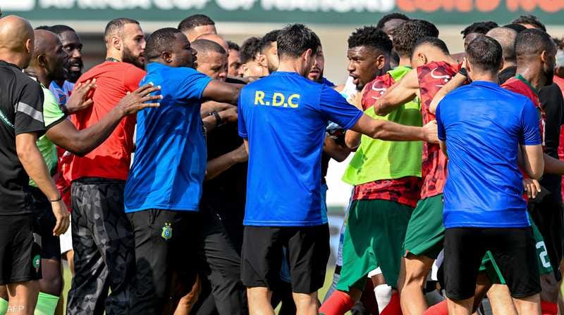 و كانت مباراة المغرب والكونغو قد شهدت أحداث عنف حين انتهت المباراة، الأحد، بالتعادل الإيجابي، إذ توجه وليد الركراكي، نحو قائد منتخب الكونغو، شانسيل مبيمبا، لمصافحته بعدما كان ينظر نحو السماء مشتكيا من “ظلم التحكيم”، لكن الأخير ترفع وسحب يده بقوة، ملوحا بما معناه أن الحكم تجاهل “الفار”، ثم قام بحركة بذيئة تجاه المدرب المغربي، الأمر الذي أشعل غضب بقية اللاعبين.