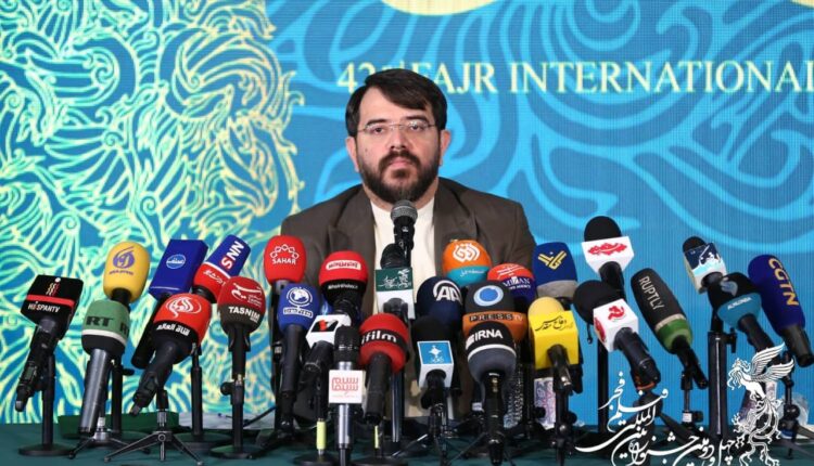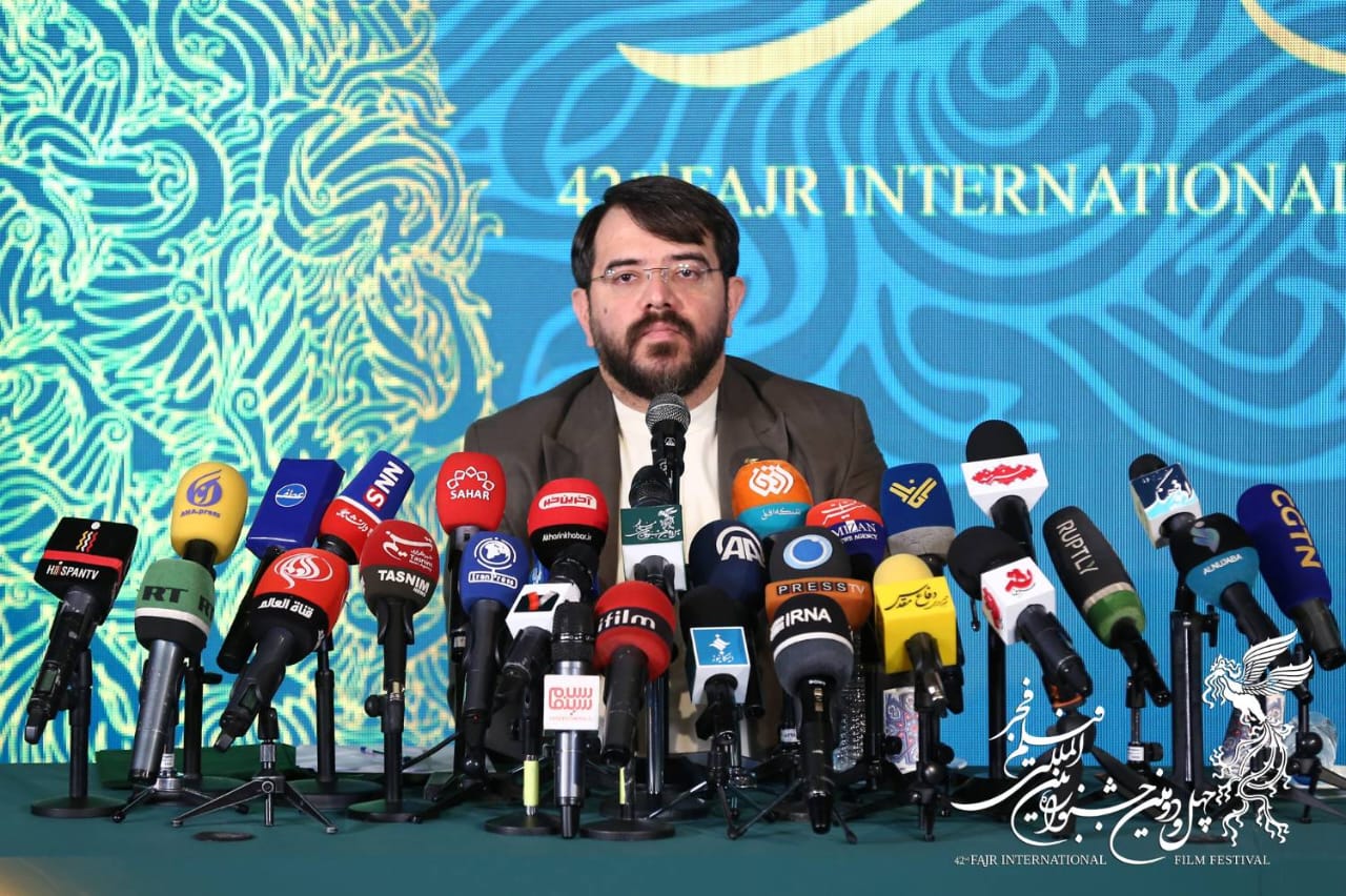 وإنعقد المؤتمر الصحفي بحضور مجتبى أميني مدير المهرجان بدورته الـ42 وجمع غفير من الإعلاميين، وتم عرض ملصقات من القسم الدولي، بما في ذلك أقسام ملامح الشرق والمسابقات الآسيوية للدول الإسلامية (سينما سعادت)، حزام الطرق، و ملصق قسم يحمل اسم “فلسطين الروح والدم”، وسوق المهرجان الدولي، وقسم الرؤية الجديدة، الذي صممه محمد رضا بیدقی.