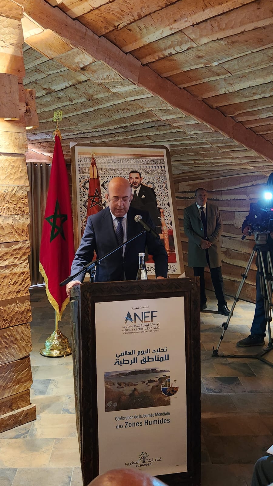 وذكر السيد عبد الرحيم هومي في بداية كلمته الافتتاحية بهذه المناسبة بالتوجيهات الملكية السامية فيما يتعلق بإشكالية الماء ببلادنا كما تطرق لوضعية الموارد المائية بالمغرب. كما أبرز دور المناطق الرطبة في تنظيم دورة المياه وامتصاص وتخزين الماء حيث تحتوي هذه المناطق على نظم بيئية غنية ومتنوعة تتوفر على تنوع بيولوجي استثنائي، إلا أنها مهددة بشكل متزايد بظاهرة الجفاف والتي تزيد التغيرات المناخية من حدتها إلى جانب بعض الأنشطة البشرية التي تهدد هذه النظم البيئية الهشة.