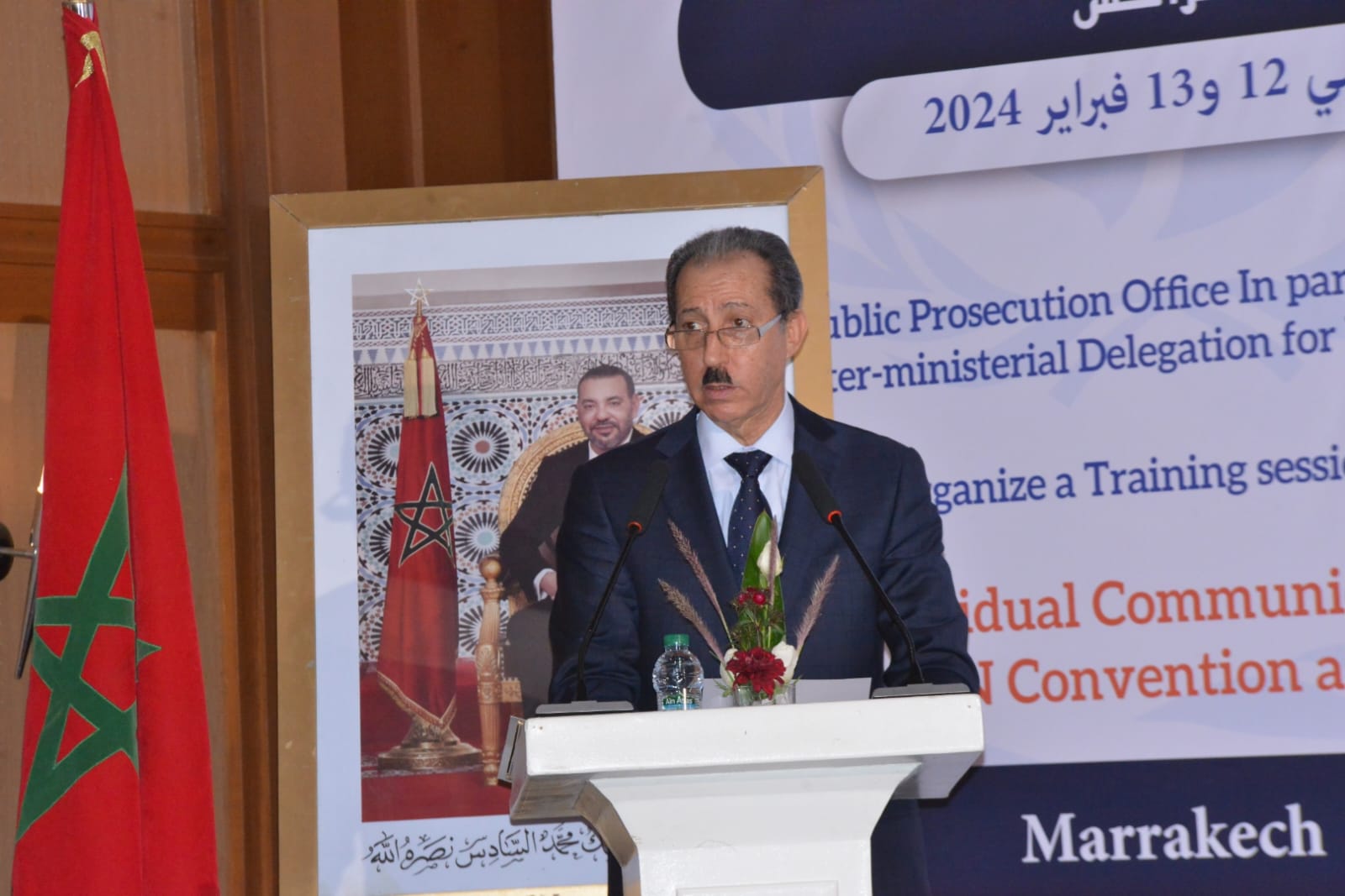 ترأس السيد مولاي الحسن الداكي الوكيل العام للملك لدى محكمة النقض رئيس النيابة العامة، صباح اليوم الإثنين 12 فبراير 2024، الجلسة الافتتاحية للدورة التكوينية حول: “البلاغات الفردية بموجب اتفاقية مناهضة التعذيب” المنظمة من طرف رئاسة النيابة العامة بشراكة مع المندوبية الوزارية المكلفة بحقوق الإنسان، وبمساهمة مركز جنيف لحوكمة قطاع الأمن.