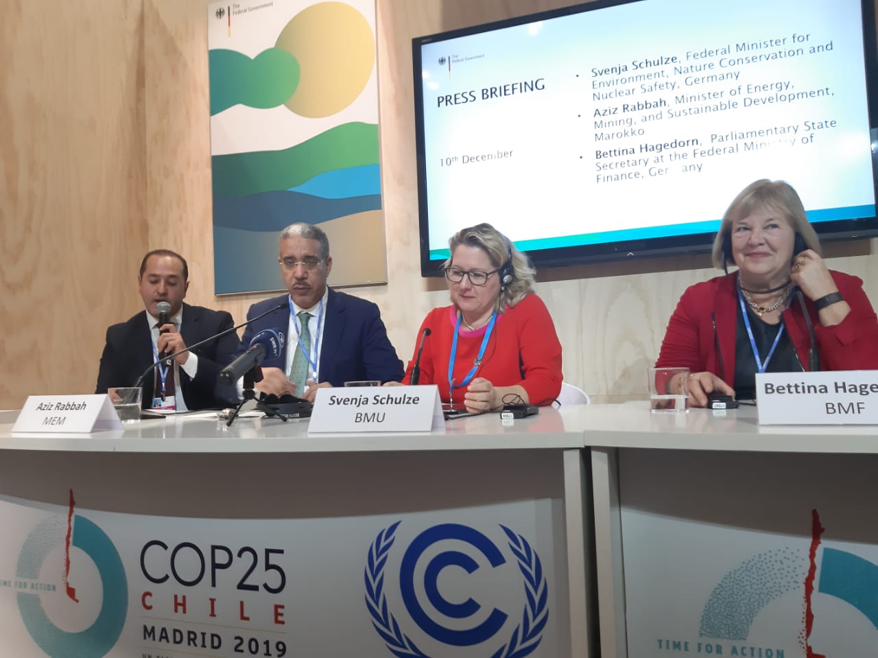 ومن جهتها أكدت وزيرة ألمانيا في البيئة، أن بلادها في حاجة لطاقات متجددة، مثل الطاقات الهيدروكاربونية التي يتوفر عليها المغرب، هذا وأن التعاون بين المغرب وألمانيا في مجال البيئة يدخل في إطار مواجهة التغيرات المناخية، عبر الطاقات والموارد المائية والاقتصاد المستدام.