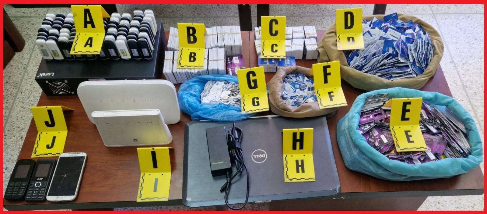 وقد مكنت عملية الضبط والتفتيش المنجزة بداخل منزل يستغله المشتبه به من حجز حاسوب محمول و82 جهازا لاسلكيا للربط بالأنترنت، فضلا عن 2077 شريحة هاتفية و1758 دعامة خاصة بالشرائح الهاتفية، وكذا مجموعة من المعدات الإلكترونية والمعلوماتية المستعملة في ارتكاب هذه الأفعال الإجرامية.