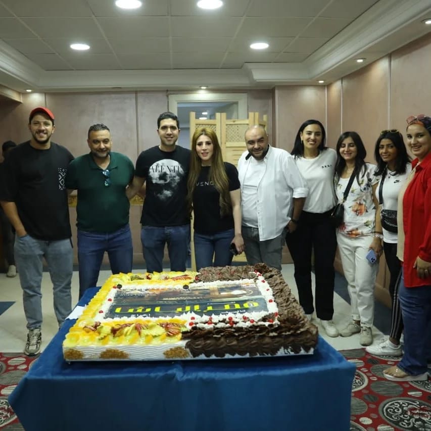 آلاء لاشين مع أحمد حاتم وحسين فهمي وأبطال قصر الباشا في أول يوم تصوير