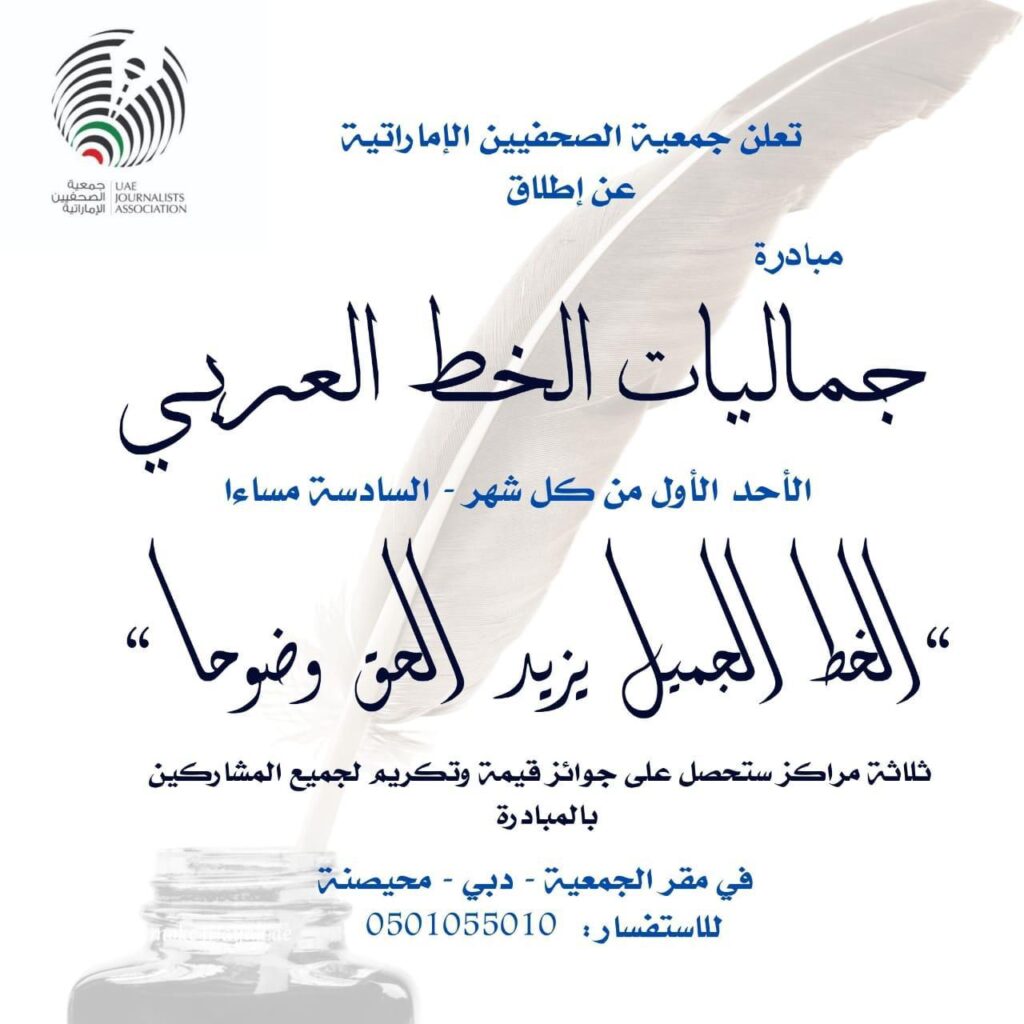 أعلنت جمعية الصحفيين بدولة الإمارات العربية المتحدة عن اطلاق مبادرة جديدة لجماليات الخط العربي .