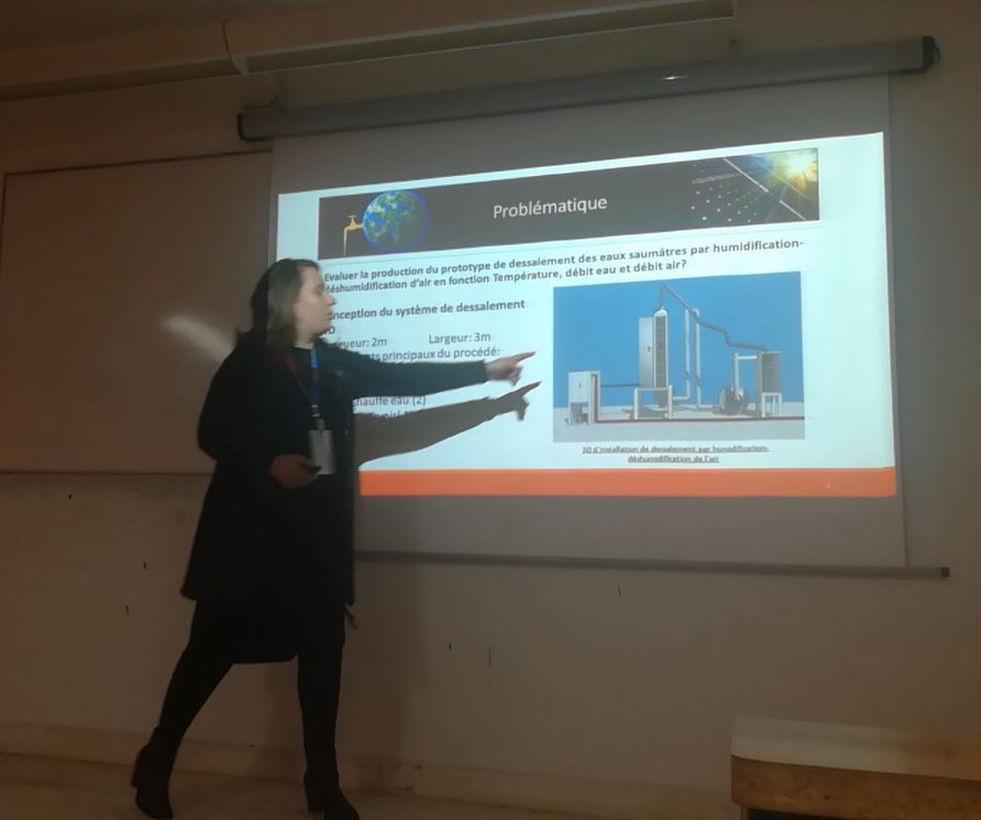 عرضت جيهان موموح خريجة المدرسة المحمدية للمهندسين محاضرة باسم الاتحاد الوطني للمهندسين المغاربة فرع تازة نموذجا رقميا لمعالجة المياه المالحة وتحويلها إلى مياه صالحة للاستعمال.