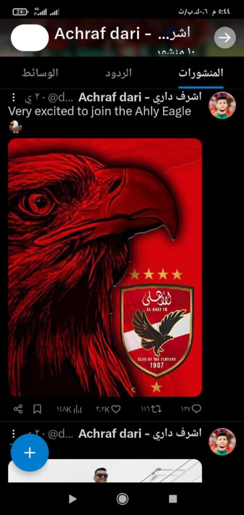 ونشرت مواقع مصرية ومغربية خبر اتمام اتفاق قلب الدفاع المدافع الدولي المغربي، ولاعب بريست الفرنسي، والوداد البيضاوي السابق أشرف داري مع الأهلي المصري.