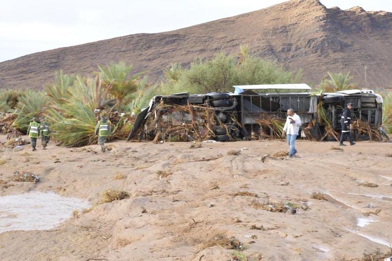 جدير بالذكر أن السلطات المحلية تسابق الزمن لإزالة آثار الكارثة سريعاً بعد إنقاذ الركاب العالقين وسط إحدى الحافلات و التي تعود لبرلماني مشهور، بعدما غمرتها فيضانات وادي “واوغروت” بمدخل مدينة طاطا، و التي كانت قادمة من مدينة طان طان.