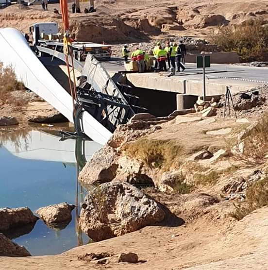 انحراف شاحنة إسبانية محملة بمعدات الطاقة الريحية بقنطرة واد ملوية