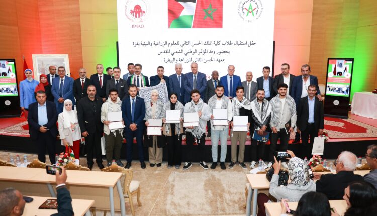 نُظم يوم أمس حفل استقبال لثمانية طلاب فلسطينيين من كلية الملك الحسن الثاني للعلوم الزراعية والبيئية في غزة، قُبلوا كطلاب زائرين بمعهد الحسن الثاني للزراعة والبيطرة في الرباط لمتابعة تخصصاتهم في الطب البيطري والإنتاج الحيواني.