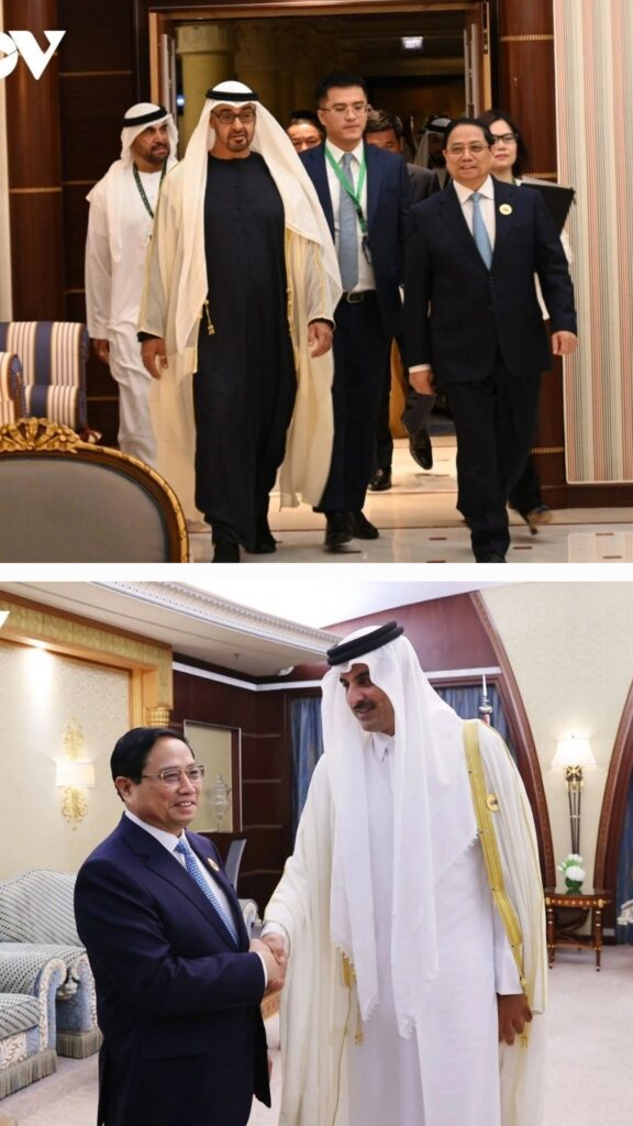 وقد شهدت العلاقات الفيتنامية-العربية مؤخراً تطوراً لافتاً عبر زيارات رئيس الوزراء الفيتنامي فام مينه تشينه الرسمية لدول مثل الإمارات العربية المتحدة والمملكة العربية السعودية وقطر، وهي الزيارات التي تعكس مدى الاهتمام الذي توليه فيتنام لتعزيز روابطها السياسية والاقتصادية مع العالم العربي.
