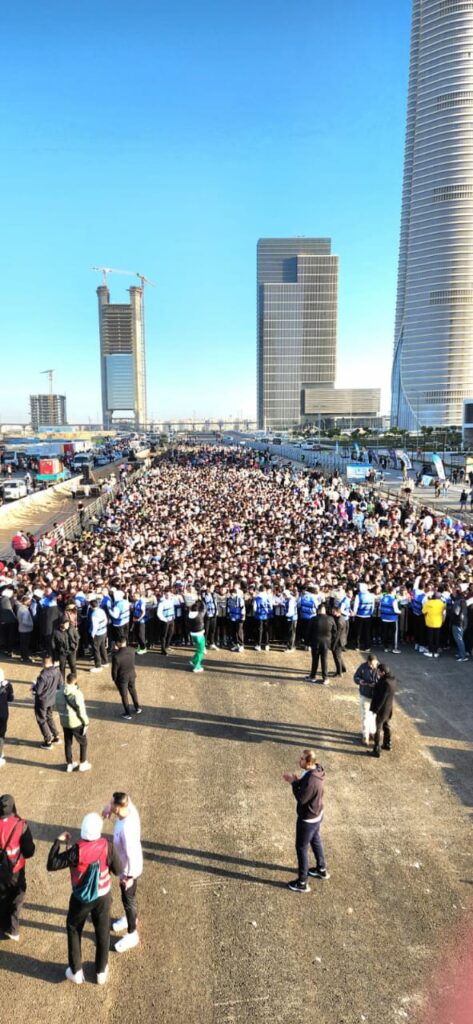 وقال:” سعيد بالمشاركة الواسعة من كافة أطياف الشعب المصري، ومن الأشقاء الرياضيين في الإمارات الحبيبة، وعدد من الدول العربية والافريقية، وهذا لاقبال الكبير على المشاركة بما يتجاوز ال 50 ألف متسابق من الأسوياء وأصحاب الهمم والهواة والمحترفين يؤكد أن رسالة السباق الخيرية وصلت إلى كافة شرائح المجتمع”.